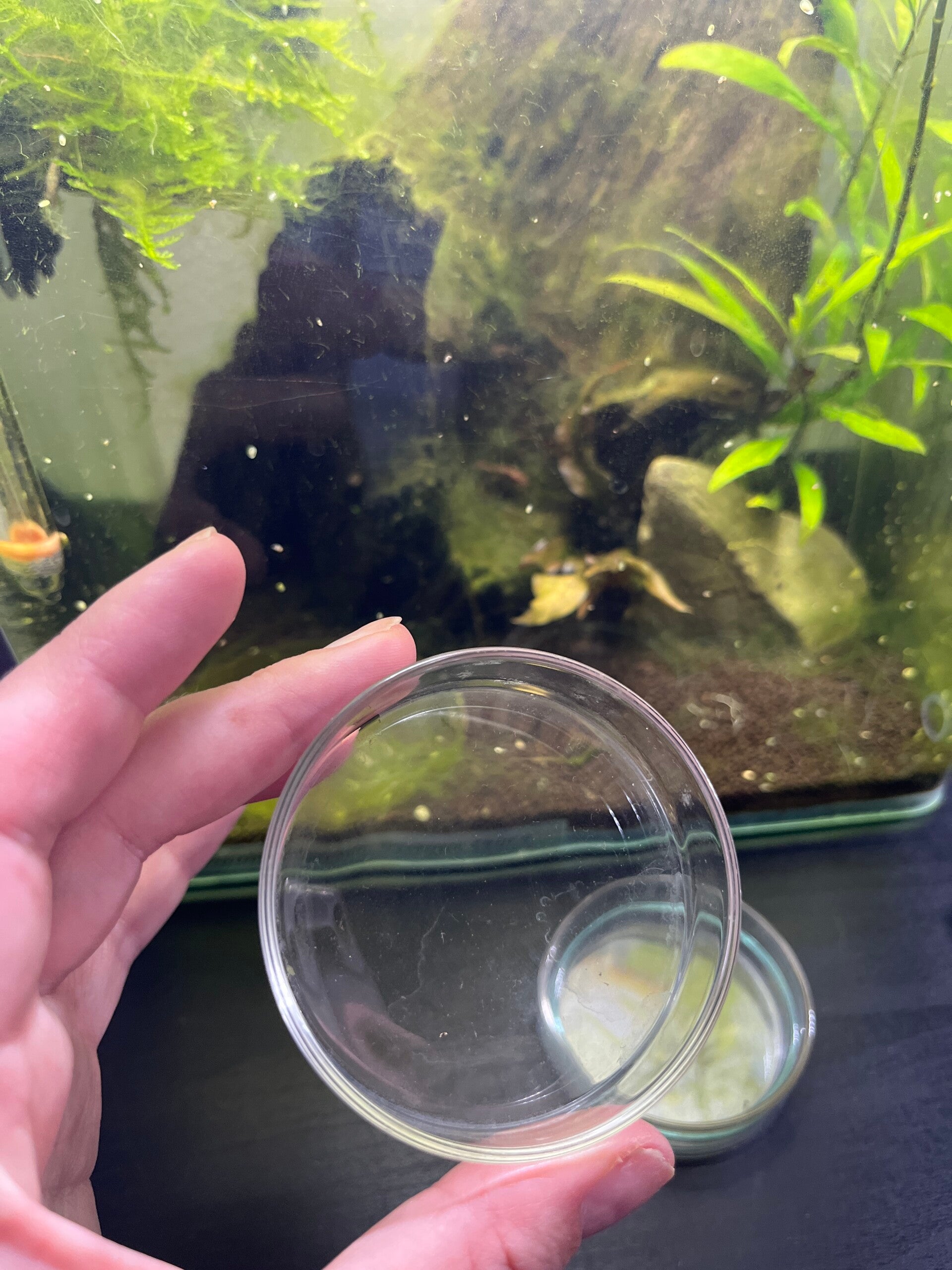 Deze gebruikte glazen voederschaaltjes zijn perfect voor het voeren van garnalen en andere kleine dieren in één centrale locatie. Deze schaaltjes zijn gemaakt van echt glas, wat ze duurzaam en gemakkelijk schoon te maken maakt. Hoewel ze gebruikt zijn, zijn ze nog steeds in prima staat en klaar voor hun nieuwe bestemming.