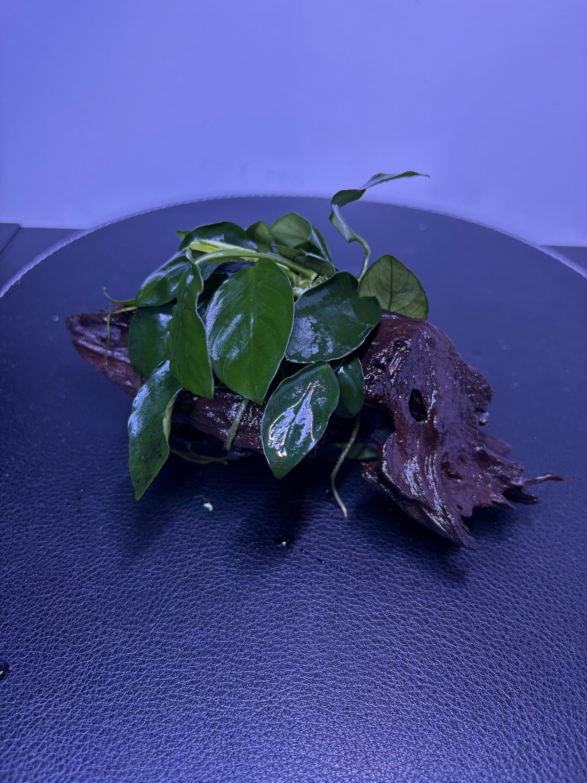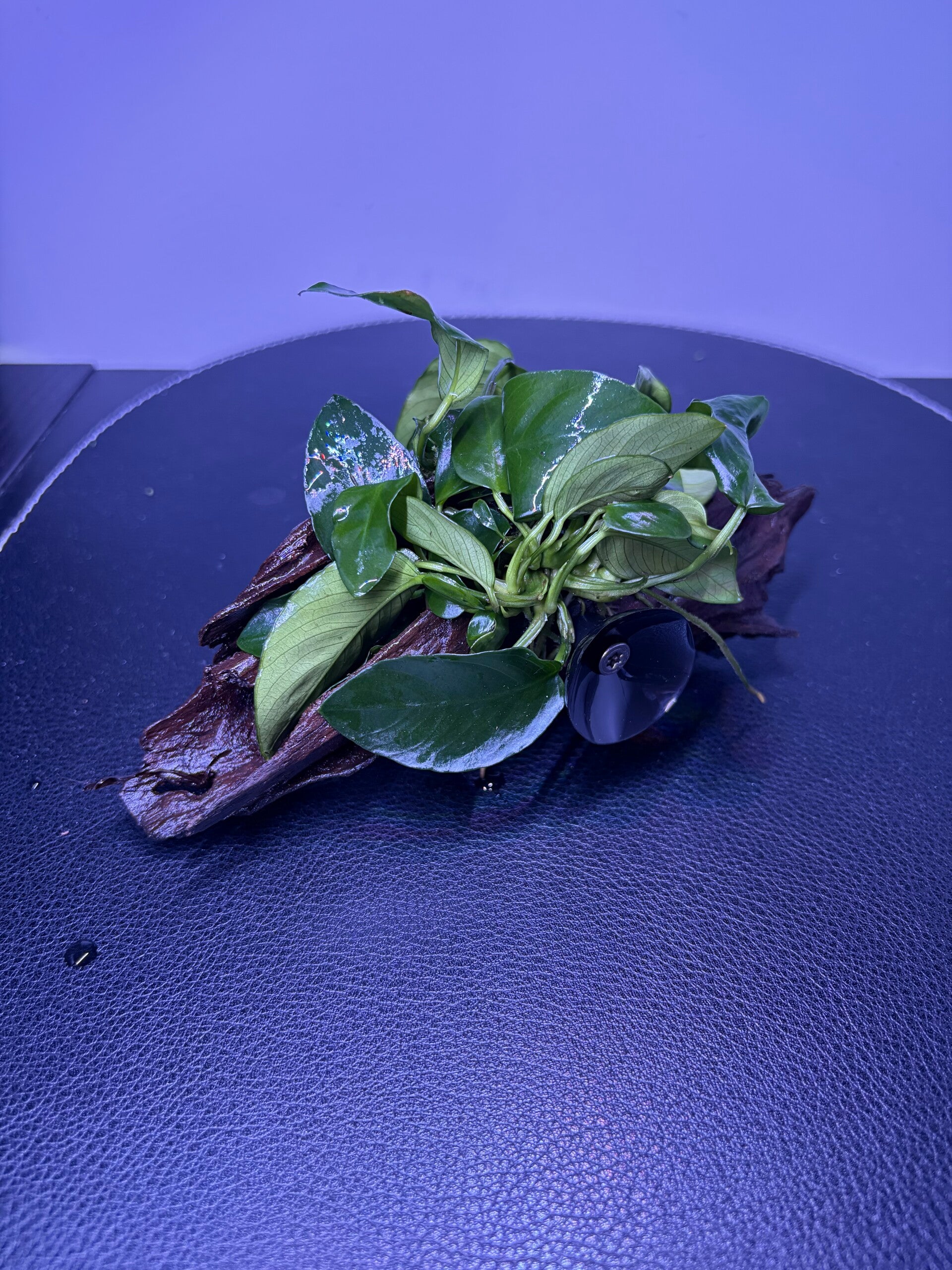 De Anubias is een zeer makkelijke, langzaam groeiende plant die weinig onderhoud nodig heeft en goed gedijt bij half licht. Het houtoppervlak en de plant maken dit decoratiestuk zeer geliefd bij garnalen, die het gebruiken als schuilplaats en graasplek. Ook kleinere en schuwere vissen profiteren van de natuurlijke beschutting.